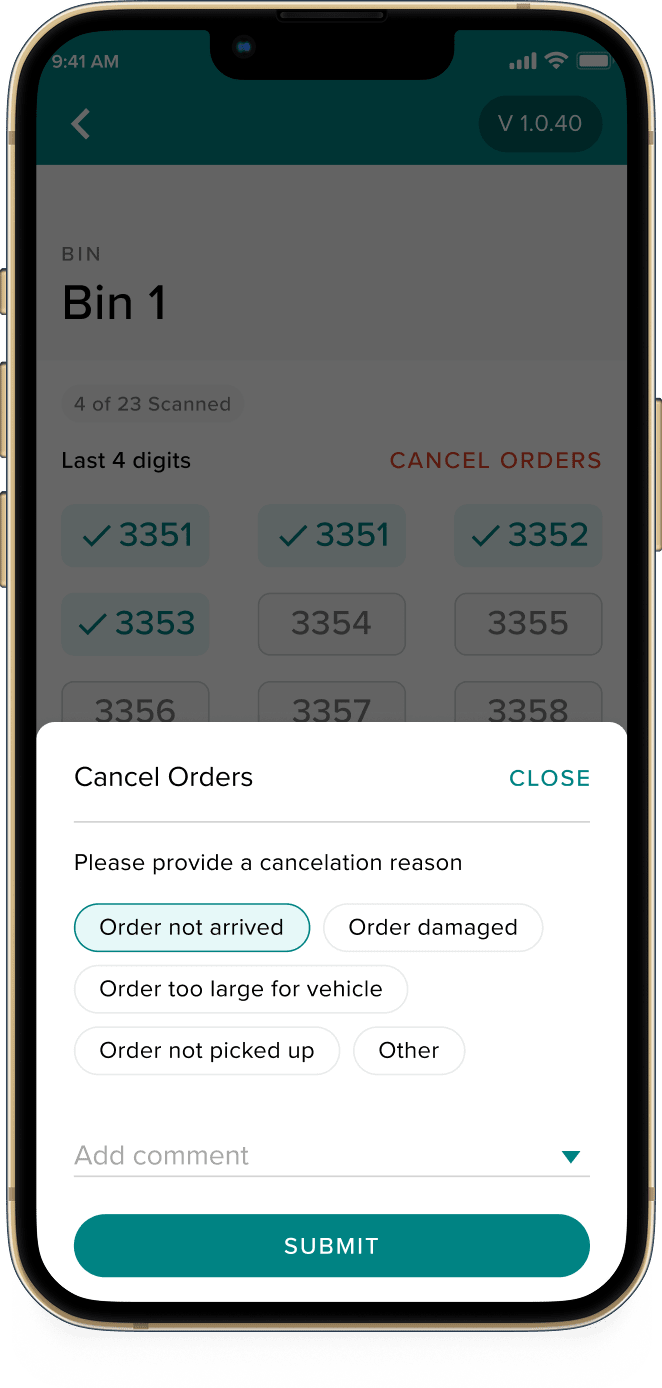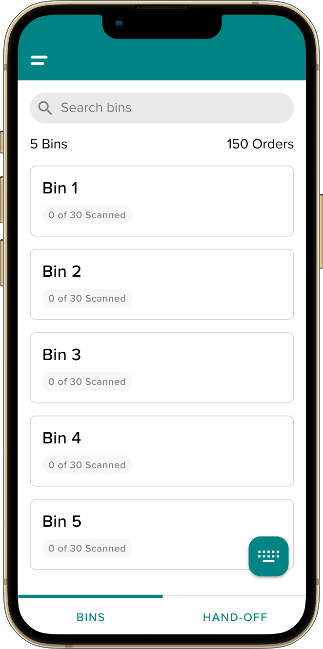 The primary user is warehouse employee and the primary goal is to sort orders into bins and handoff