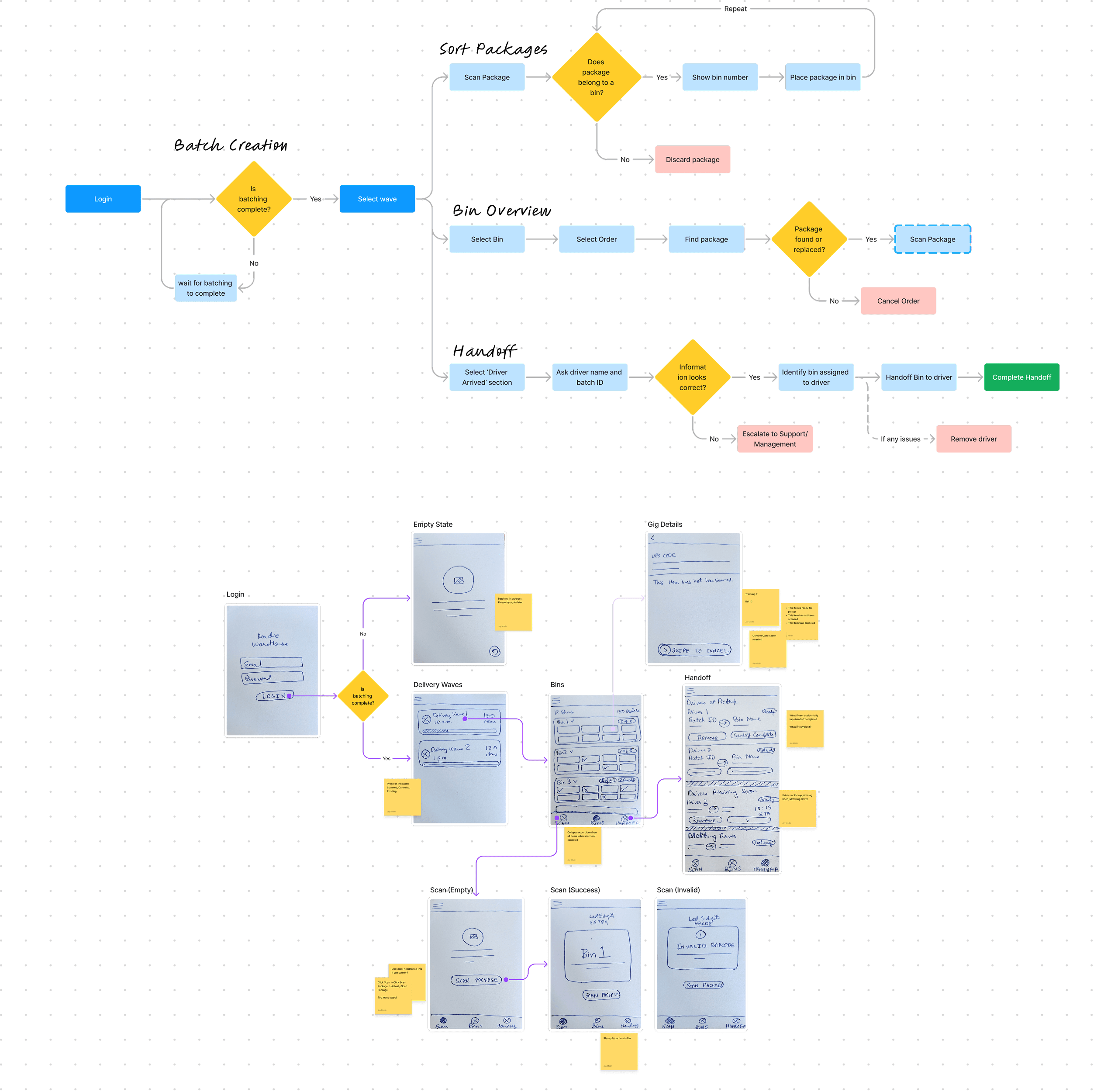 Working with Fanatics, I designed an MVP product that enables sorting of packages and pickups