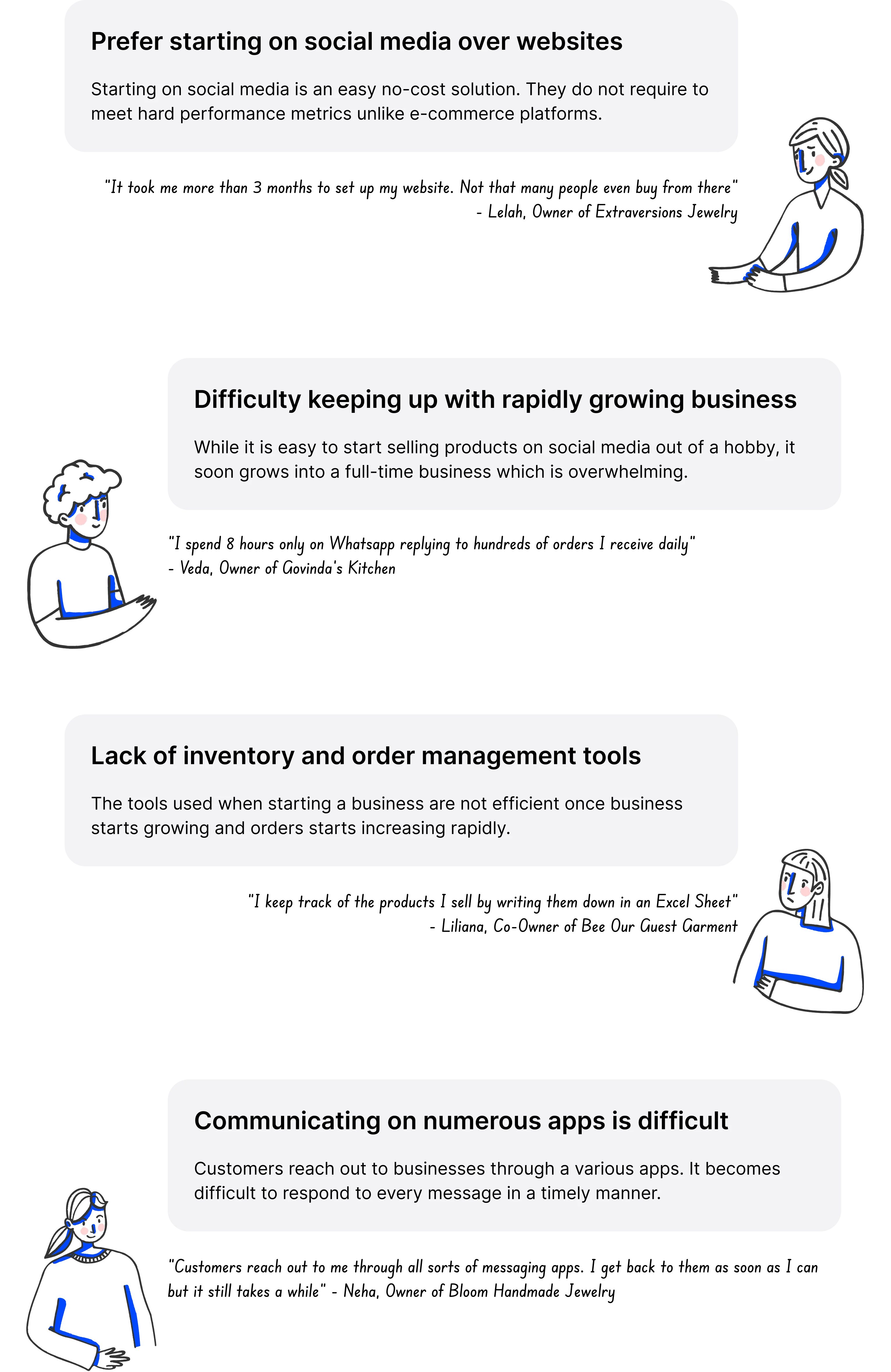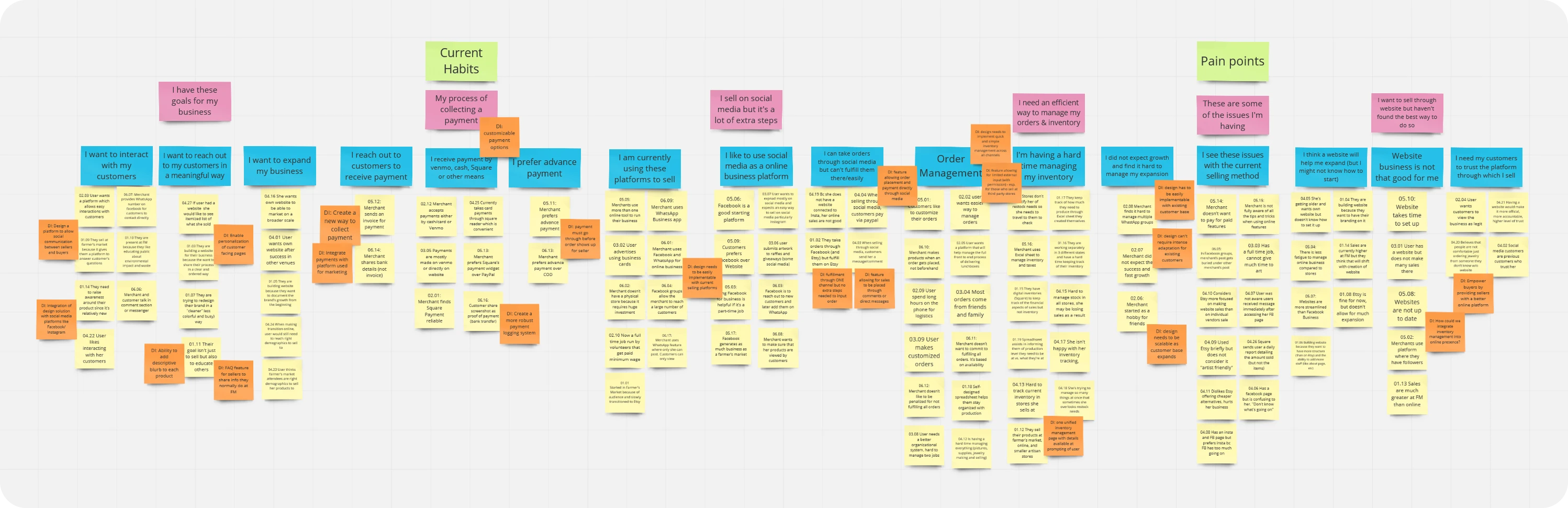 By mapping the affinity diagram, we identified the following paint-points and the needs of the business
