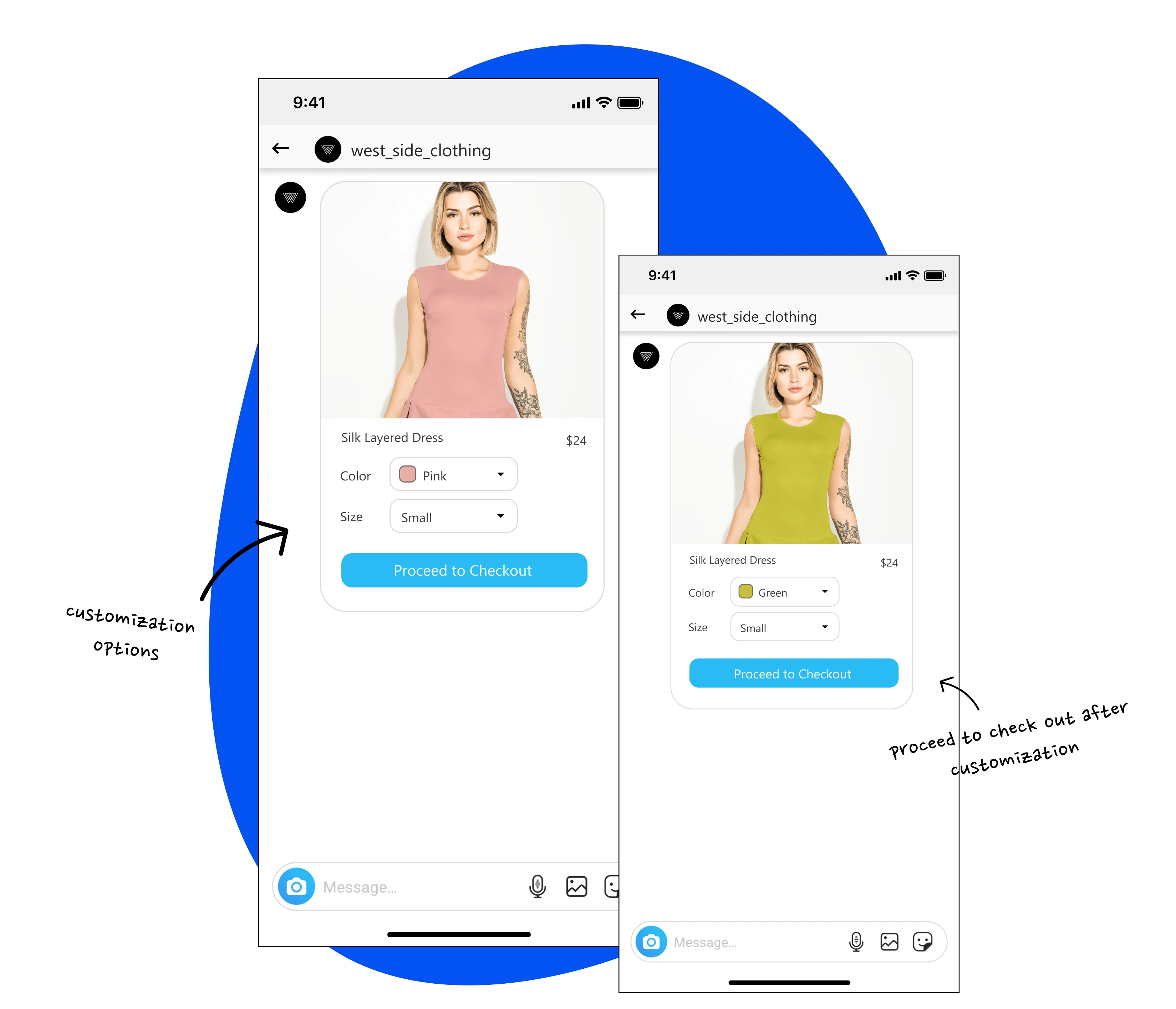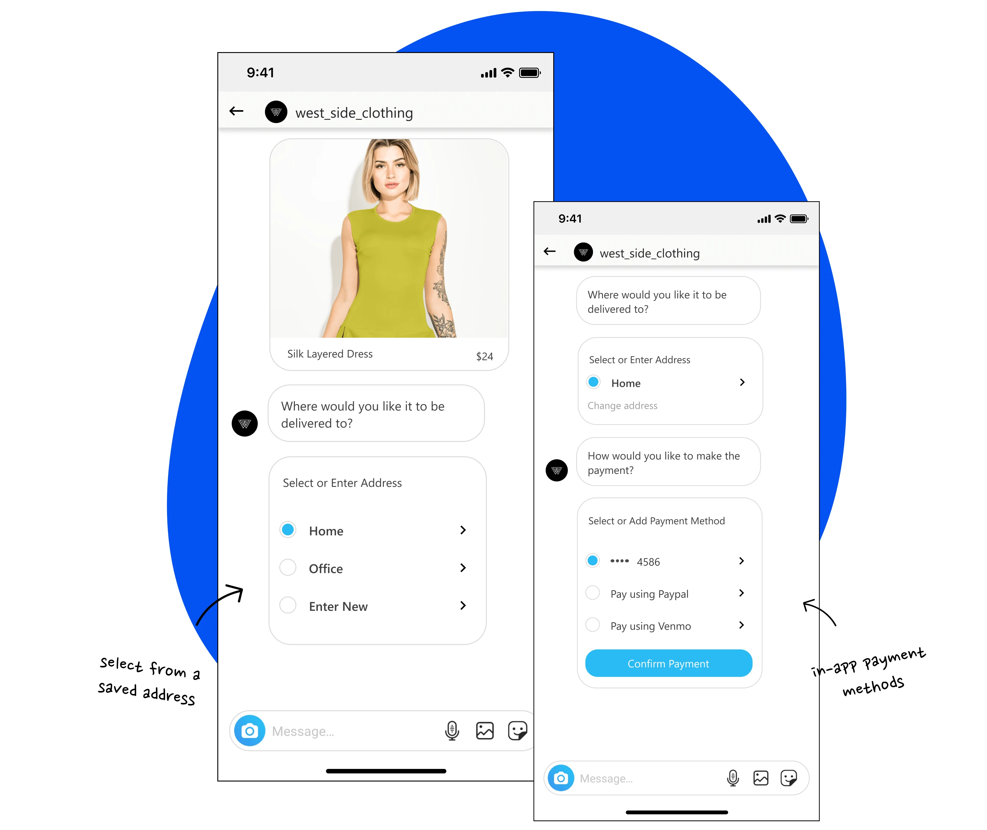 For customers, I designed the experience of placing an order through interactive messaging on social