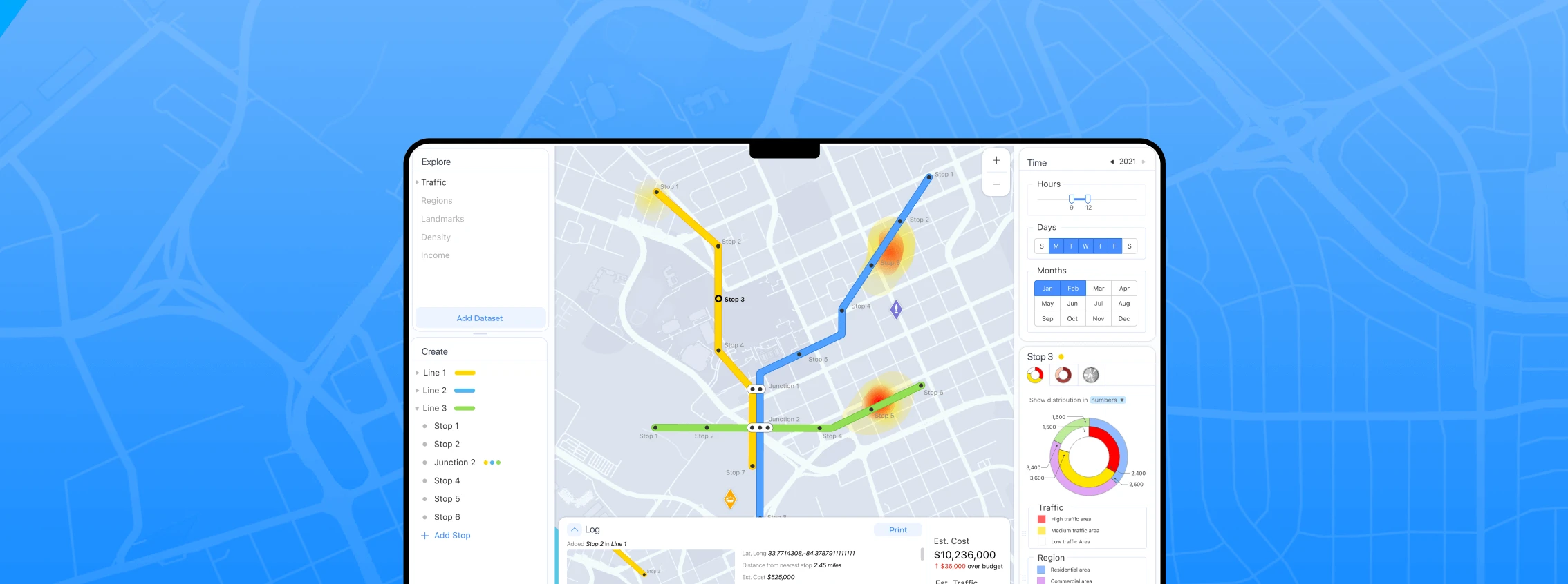 The solution should enable users to visualize and analyze map and traffic data, gather