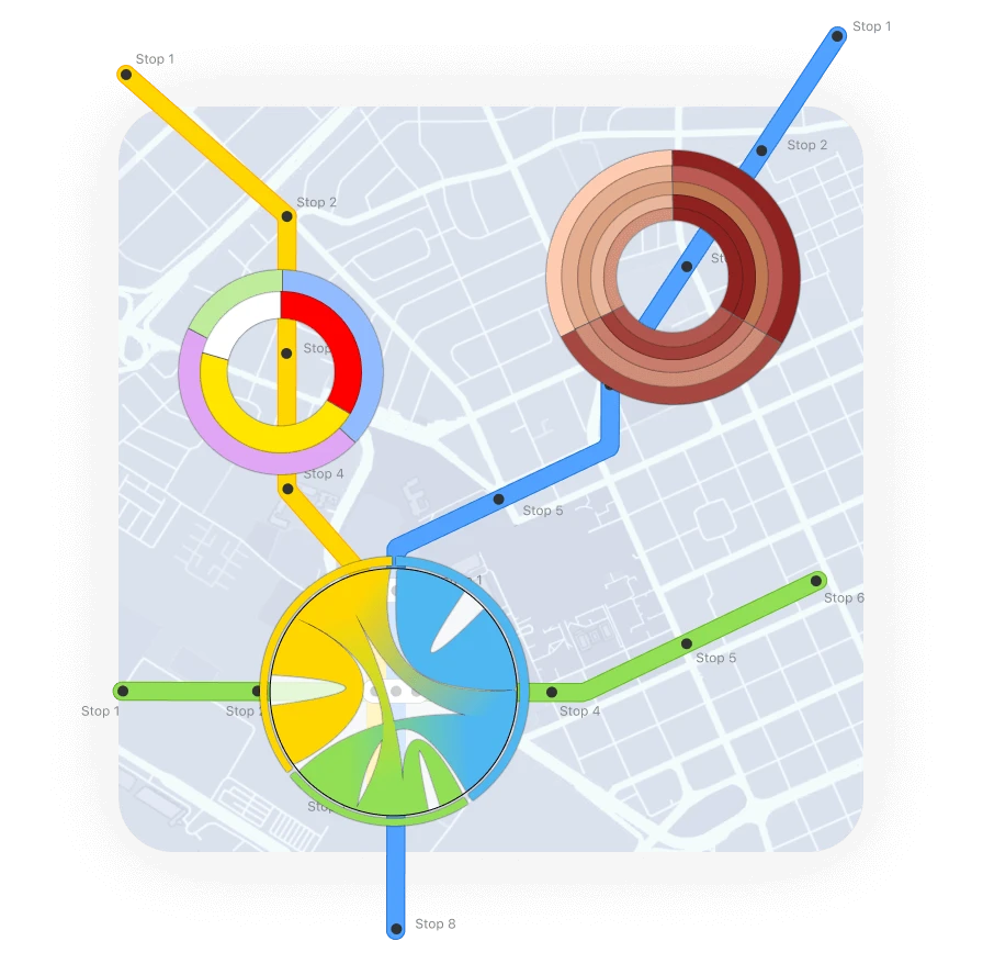 Providing dynamic visualizations such as donut, radial and chord charts allows